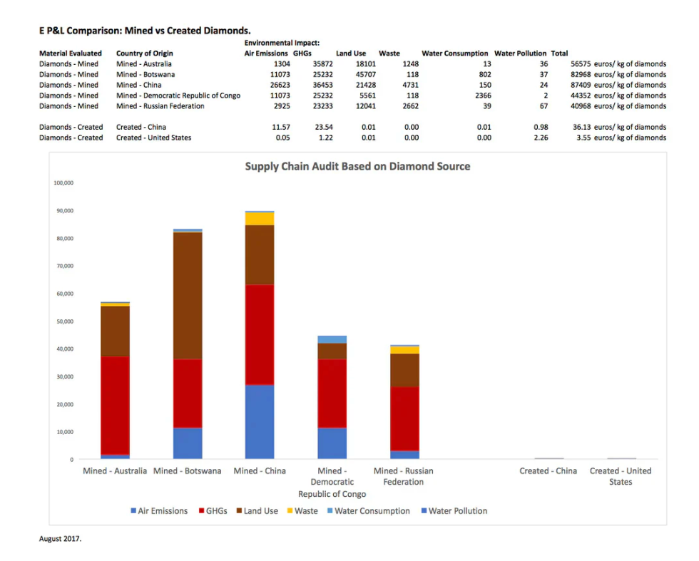 Die Hightech-Produktionsstätte in Wenatchee, Washington, wird emissionsfrei betrieben. Die Diamond Foundry nutzt ausschließlich die Wasserkraft des Columbia River zur Herstellung der Rohdiamanten. Sie arbeitet eng mit den Verantwortlichen vor Ort zusammen, um sicherzustellen, dass auch für zukünftige Produktionserweiterungen zu 100 % erneuerbare Energien genutzt werden können.