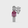 Zwei sorgfältig platzierte, im Labor gewachsene tropfenförmige Diamanten – einer in klarem Weiß, der andere in intensivem Fancy Pink – entfalten ein faszinierendes Spiel von Intensität und Balance.